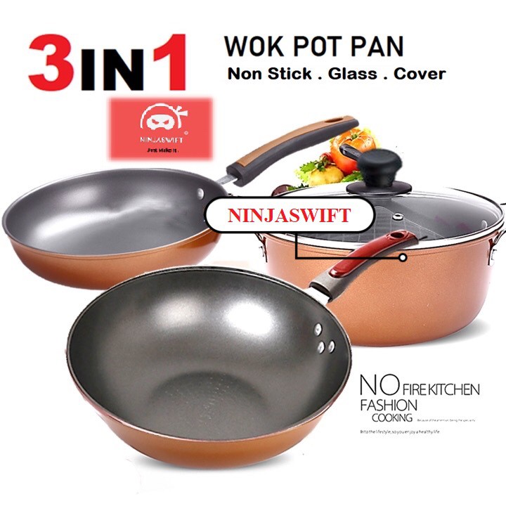 8 8 Limited Deals 3 In 1 Premium Set Non Stick Kitchen Cookware Wok Pot Pan Fryer Cooker Kuali Periuk Memasak 1 Shopee Malaysia
